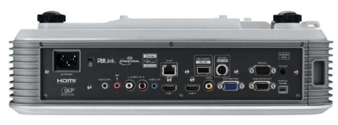 2 x HDMI (obsługa 1.4a 3D), 2 x VGA (YPbPr/RGB), gniazdo kompozytowe, 2 x wejście audio 3.5mm, wyjście audio 3.5mm, wyjście VGA (współdzielone z VGA2), RJ45, RS232, port USB do podłączenia zdalnej myszy/serwisowy, przerzutnik 12V, wejście mikrofonowe, port USB-A z zasilaniem, 3D-Sync