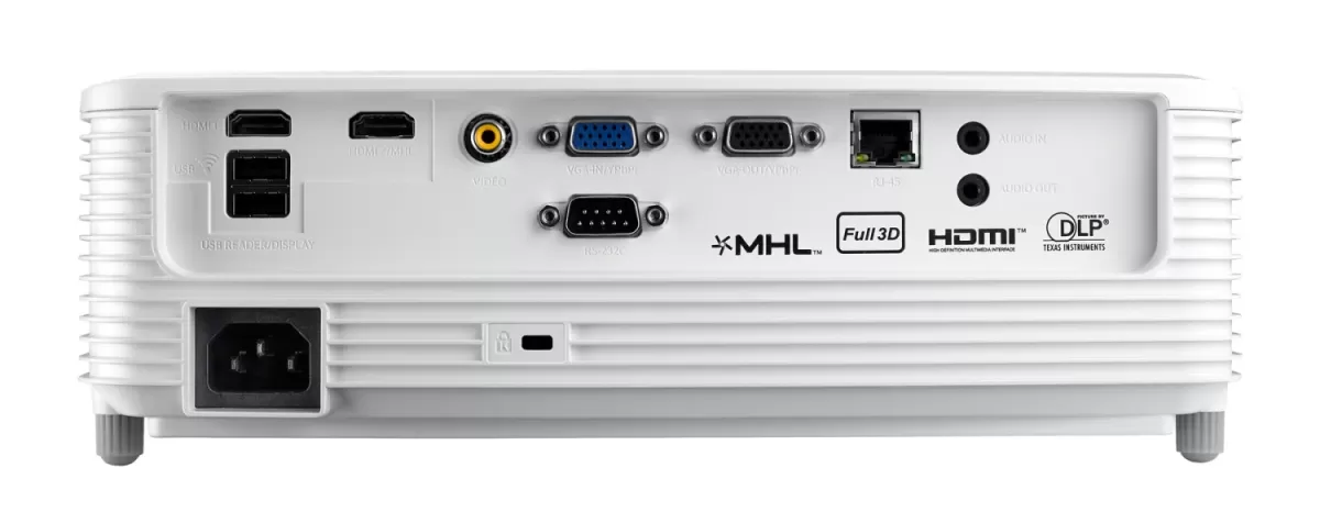 I/O Connectors2xHDMI (with MHL), VGA-in, VGA-out, composite video, audio-in (3.5mm), audio-out (3.5mm), RJ-45, 1x USB (for optional Wi-Fi adapter), 1x USB (USB reader and USB power), USB-B mini (service), 12V trigger (3.5mm), RS-232C