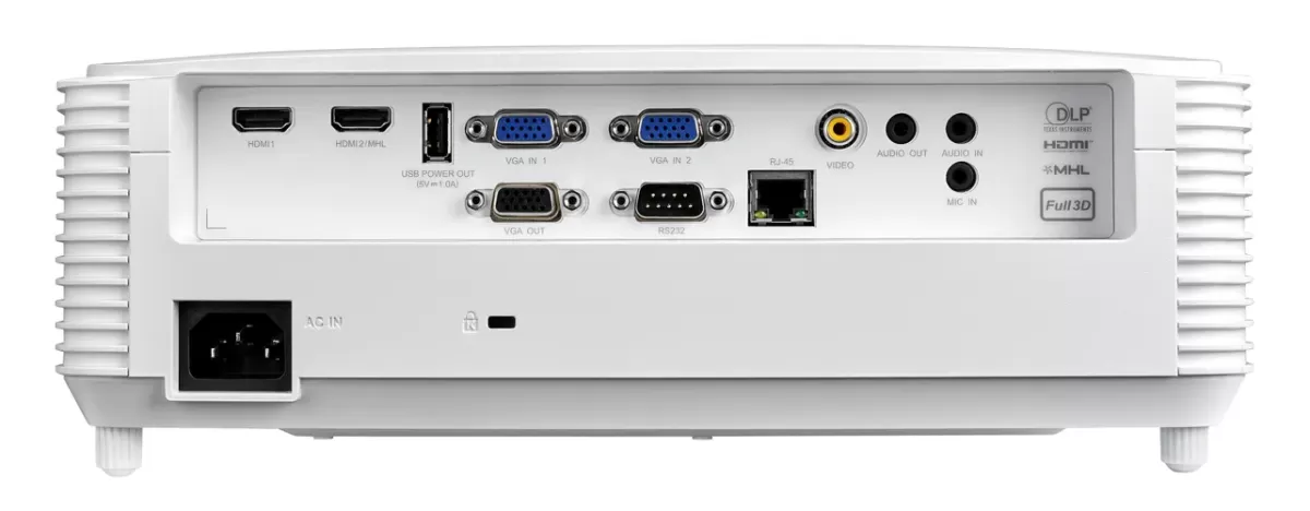 Solidne wejścia to HDMI, VGA i kompozytowe, zapewniające łączność z szeroką gamą cyfrowych i starszych urządzeń. Żywotność lampy do 10 000 godzin umożliwia wieloletnie użytkowanie przy minimalnej konserwacji.
