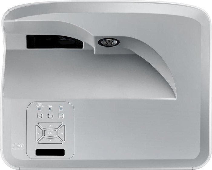 Wysokiej jakości obiektyw UST zapewnia duże obrazy z krótkiej odległości projekcji. Umożliwia to umieszczenie projektora bliżej ściany, redukując cienie.
