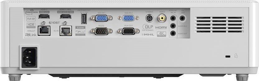 Wejścia HDMI, HDBaseT i VGA zapewniają łączność z wysokiej jakości cyfrowym sygnałem wideo 4K HDR lub starszymi analogowymi źródłami wideo, podczas gdy LAN i RS-232 umożliwiają sterowanie przez Extron, AMX lub Telnet. Głośniki stereofoniczne o mocy 10 W na kanał zapewniają bogate audio dla aplikacji typu „wszystko w jednym", wyjście trigger 12 V zapewnia kompatybilność z ekranami zmotoryzowanymi.