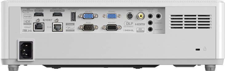 Connections: 1x HDMI 2.0 (HDCP 2.2, MHL), 1x HDMI 1.4, 1x HDBaseT, 1x composite, 2x VGA, 1x S-video, 1x audio in, 1x mic/audio in, 1x USB-A (power), 1x VGA out (VGA 1 only), 1x audio out, 1x 12v trigger