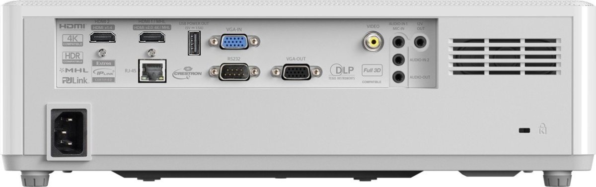 Porty wejścia 1 x Obsługuje HDMI 1.4a 3D, 1 x Obsługuje HDMI 1.4a 3D + MHL, 1 x VGA, 1 x Złącze kompozytowe, 1 x RS232, 1 x Mikrofon Mic 3.5 mm, 1 x Audio 3.5mm, 1 x RJ45