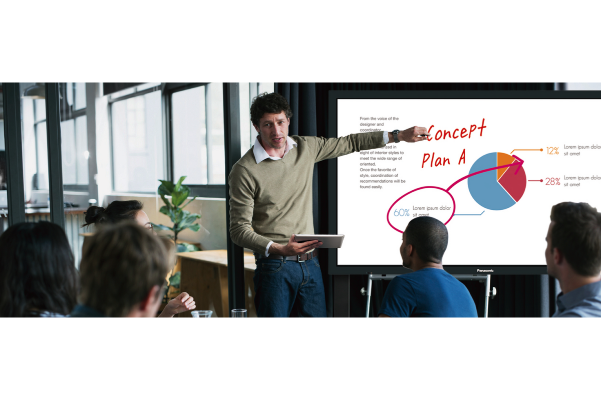 Dzięki funkcjonalności interaktywnego ekranu dotykowego modele TH-65BFE1 i TH-75BQE1 doskonale nadają się do wspólnej pracy — jako interaktywne tablice zarówno w klasach szkolnych, jak i w salach narad. Podobnie jak pozostałe produkty z serii BF1, te ekrany wyposażono w oprogramowanie Panasonic Whiteboard, obejmujące pracę w trybie tablicy lub trybie prezentacji programu PowerPoint®, a także funkcje wideo i rejestracji zawartości ekranu.