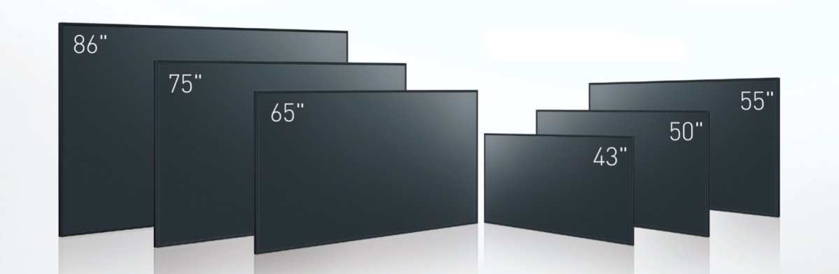 Od 43" do 86", 350 cd/m², działanie w trybie całodobowym (modele 86" i 75"), panel IPS (modele 86" i 75")