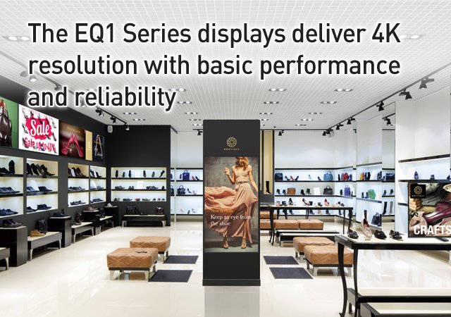Aby obsłużyć najnowszą zawartość wideo 4k i Full HD, wyświetlacze mają dwa porty HDMI kompatybilne z HDCP do odtwarzania treści chronionych przez DRM. Wszystkie wyświetlacze z serii EQ1 nadają się do użytku z uchwytami kompatybilnymi z VESA.