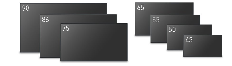 Seria SQ2H jest dostępna w siedmiu rozmiarach — od 43 do 98 cali — dla przestrzeni o dowolnej wielkości. Można je łatwo obracać w celu obsługi treści zorientowanych pionowo, a także przechylać do przodu i do tyłu, aby uzyskać łatwiejsze kąty widzenia. A dzięki stałej 24-godzinnej sprawności zapewniają spokój ducha podczas długich godzin pracy wyświetlaczy.