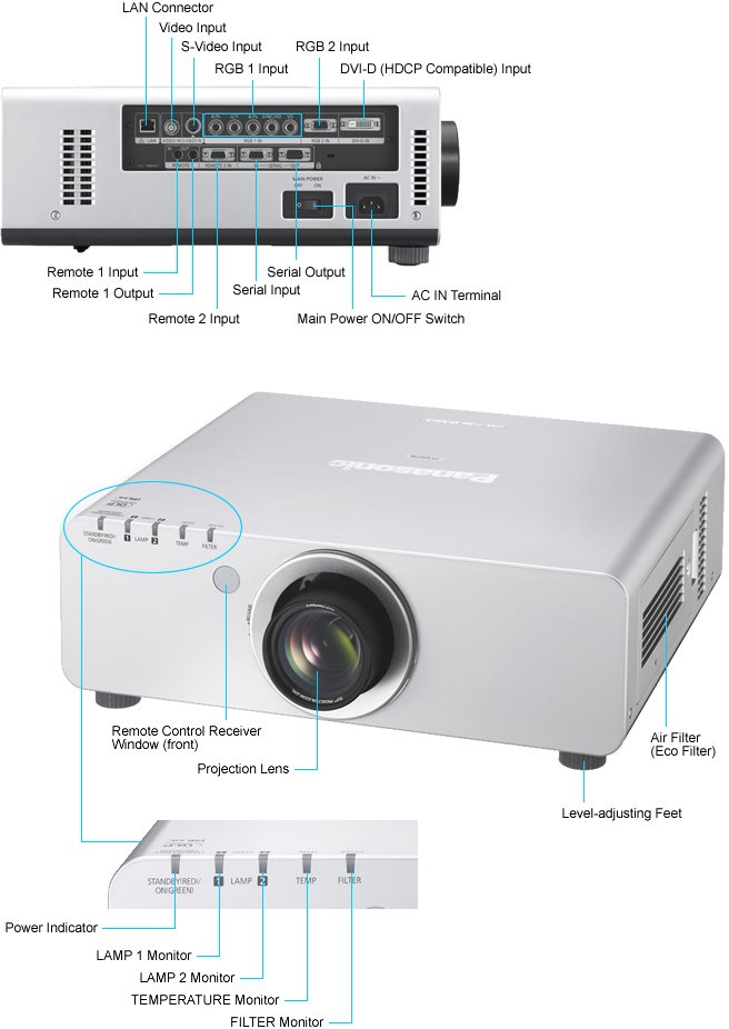 Profesjonalne projektory 730 Series są wyposażone w dużą liczbę złącz - RGB-dwa wejścia, z których jeden został zaprojektowany w formie 5 BNC-złącza, jedno wejście S-Video, dwa wejścia i jedno wyjście do przewodowego pilota. Wejście DVI-D oraz możliwość zdalnego sterowania projektorem sprawiają, że nadaje się do wielu zadań, w tym instalacji w teatrach i konozalah, klasach i salach, muzeów, itp
