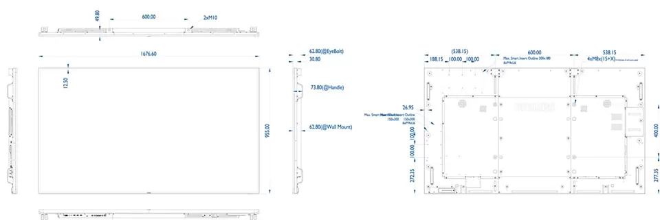 1677x955x74mm (SxWxG)