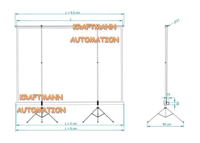 - Opcjonalne Malowanie Proszkowe Kasety Ekranu Oraz Listwy Usztywniającej Płótno I Trójnogu Na Dowolny Kolor Z Palety RAL