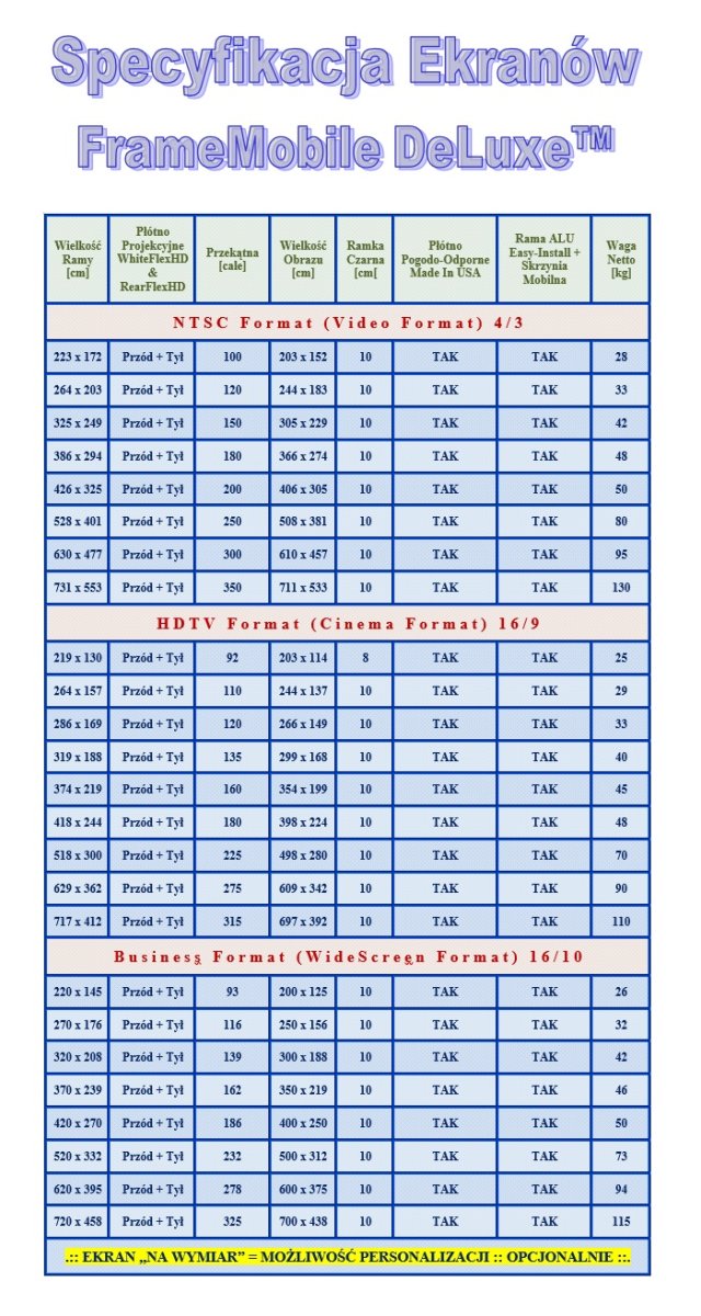 Ekran Ramowy Przenośny W Skrzyni FrameMobile DeLuxe 700cm 4:3 350" Projekcja Przednia i Tylna