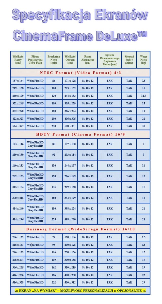 Ekran ramowy ścienny seria CinemaFrame DeLuxe