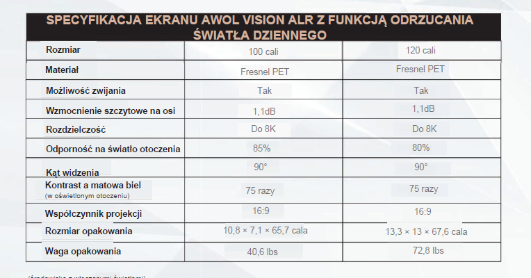 EKRAN PROJEKCYJNY RAMOWY 100 Cali AWOL ALR-D100 223.5 x 126.5cm 16:9