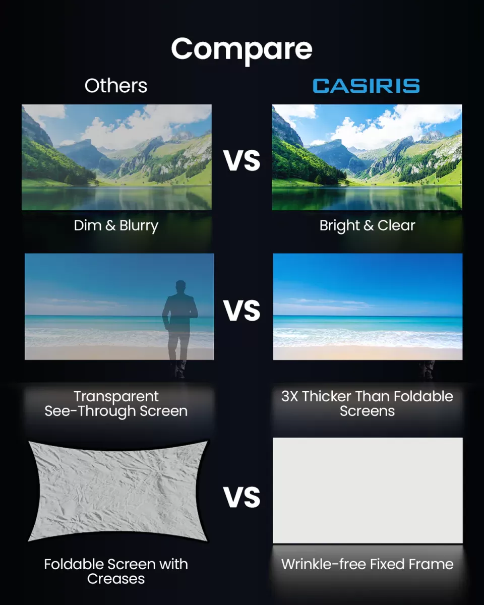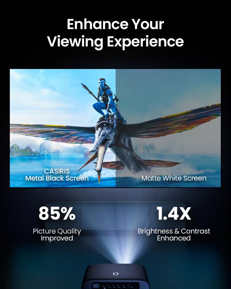- Materiał wysokiej jakości : Wykonany z najwyższej jakości materiału PVC, oferuje jednolitą fakturę powierzchni i właściwości odblaskowe, zapewniając skuteczne odbicie światła, zwiększając jasność i przejrzystość, skutecznie poprawiając jakość obrazu o 85%. Jest również trwały, może wytrzymać długotrwałe użytkowanie i częste czyszczenie bez uszkodzeń lub zarysowań.