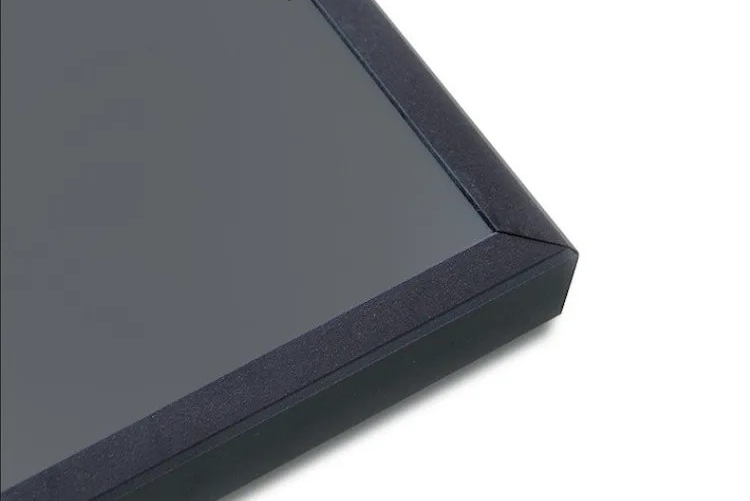 Rama Cinema SlimFrame firmy DELUXX ma stabilną, wytłaczaną stabilną, wytłaczaną aluminiową ramę i wykorzystuje najcieńszą widoczną krawędź na rynku widoczną krawędź na rynku dla maksymalnej widoczności przy minimalnym rozmiarze instalacji. Z krawędzią o grubości zaledwie 12 mm, ultracienka ramka zapewnia elegancki i wyrafinowany wygląd elegancki i wyrafinowany wygląd, który jest idealny do nowoczesnych zastosowań kina domowego zastosowań komercyjnych.