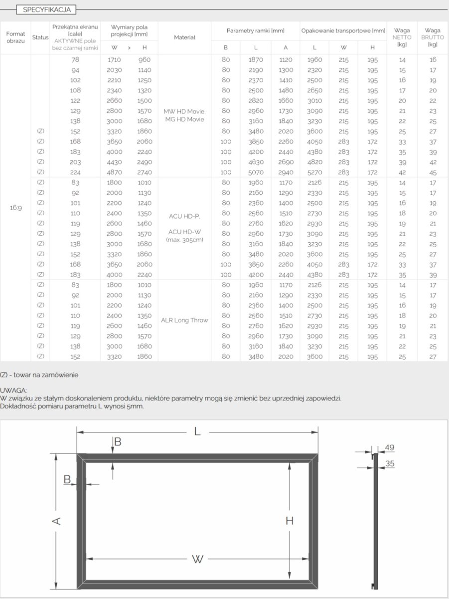 ⁽*⁾ Inne formaty obrazu NA ZAMÓWIENIE.
