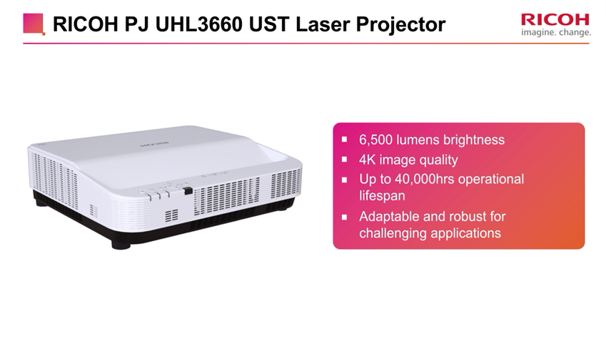 Projektor laserowy RICOH PJ UHL3660 UST zapewnia doskonałe wrażenia wizualne w każdym otoczeniu.