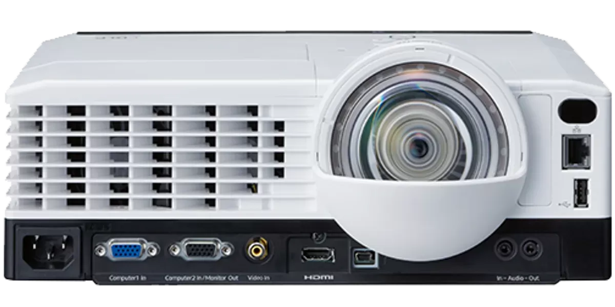- Projektor można łatwo zamontować na ścianie czy suficie, a dzięki obiektywowi ultra-high definition prowadzący prezentację może stanąć bliżej ekranu i wskazywać poszczególne jej elementy bez tworzenia cieni czy blokowania projekcji.