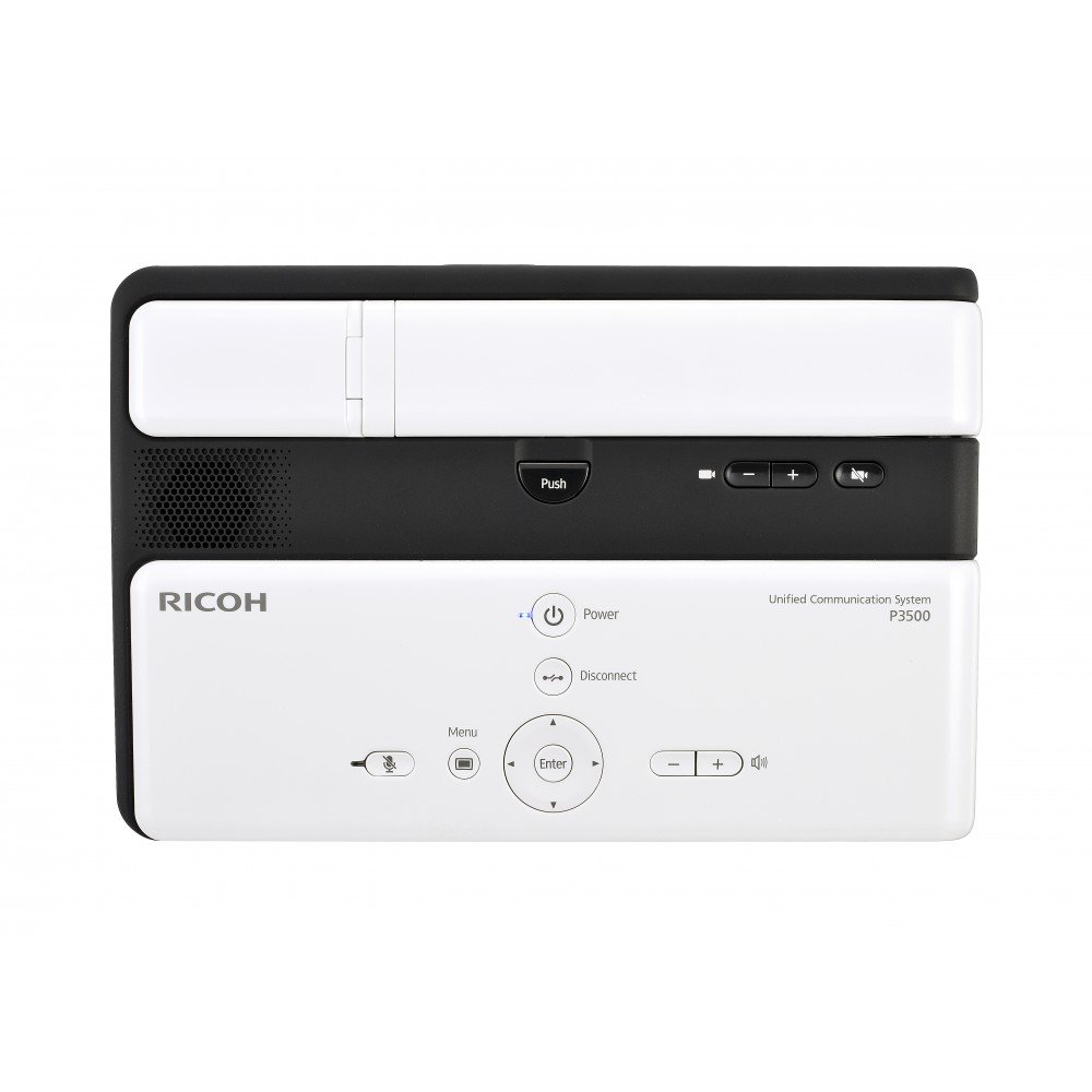System do wideokonferencji UCS (Unified Communication System) model P3500M zapewnia interaktywną komunikację audio i wideo z wieloma zdalnymi miejscami przy wykorzystaniu połaczenia internetowego. Korzystając z wirtualnego pokoju (VMR - Virtual Meeting Room) istnieje możliwość połączenia z 50 użytkownikami. Lekkie i przenośne urządzenie można ustawić w dowolnym miejscu. Ricoh UCS P3500M obsługuje zarówno przewodowe i bezprzewodowe połączenia sieciowe. Dodatkowo posiada kamerę o rozdzielczości 2.0M pikseli z cyforwym zoom x4, złącze HDMI (video in & out), wbudowany wysokiej jaości mikrofon oraz głośnik. Dołączona jest do zestawu bezprzewodowa klawiatura do sterowania systemem do wideokonferencji, pilot oraz torba do P3500M.