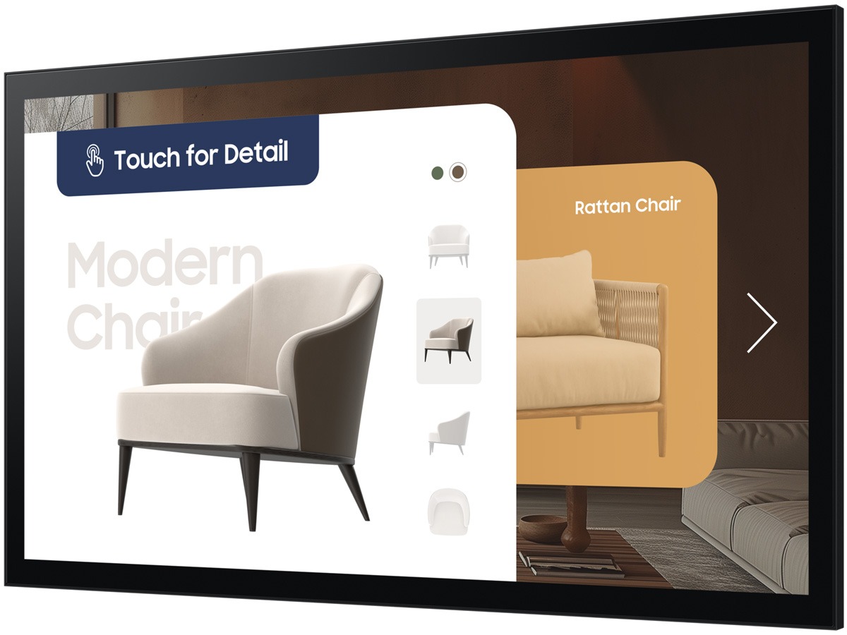 Zaprojektowany z myślą o przestrzeniach biurowych, 32-calowy wyświetlacz QMC-T łączy w sobie kompaktową formę z zaawansowaną funkcjonalnością dotyku. Wysoce responsywny panel dotykowy z 10 punktami aktywacji sprawia, że korzystanie z niego jest niezwykle proste. Jest to doskonałe rozwiązanie do interakcji z klientami, wykorzystania w systemach nawigacyjnych oraz przekazach reklamowych. Smukły, stylowy i wszechstronny – wpasowuje się w każde miejsce, gdzie komunikacja ma znaczenie.