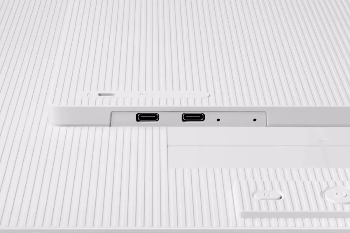 Obudowa wyświetlacza jest wykonana z tworzyw sztucznych pochodzących z recyklingu, a całe opakowanie (w tym karton, podkładka, uchwyt i pudełko na akcesoria) jest wykonane w 100% z papieru – jako element działań na rzecz zrównoważonego rozwoju.