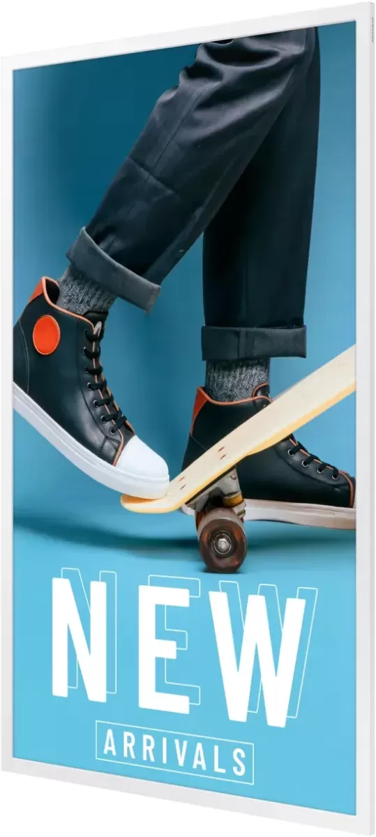 Wyświetlacz z serii EMDX wyróżnia się smukłym i estetycznym designem. Jego ultracienka konstrukcja, o grubości zaledwie 17,9 mm, dodaje prestiżu i nowoczesności, elegancko podkreślając różne przestrzenie biznesowe.