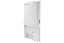 Samsung Kiosk składa się z jednego wyświetlacza, connection box oraz opcjonalnego stojaka. Konstrukcja ta umożliwia wygodne poprowadzenie kabli, a szaro-biały kolor i prosty stojak idealnie wtapiają kiosk w każde wnętrze o stylowym wyglądzie.