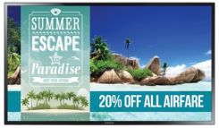 Przyciągaj widzów wyraźnym obrazem FHD i realistycznymi kolorami na eleganckim wyświetlaczu z technologią Samsung d-LED. Atrakcyjna lekka obudowa z wąską ramką umożliwia oglądającym skoncentrowanie się na przekazie, co otwiera nowe możliwości przed twoją firmą. Dodatkowa funkcja obrotu ekranu zapewnia elastyczność, umożliwiając wyświetlanie obrazu w pionie lub w poziomie.