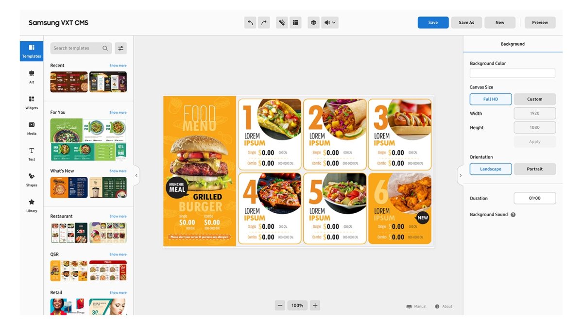 Samsung VXT to oparte na chmurze rozwiązanie, które łączy funkcje zarządzania treścią i urządzeniami. Umożliwia użytkownikom zdalne regulowanie ustawień sprzętu oraz rozwiązywanie problemów. Tworzenie i wdrażanie treści jest proste oraz intuicyjne i nie wymaga wcześniejszego szkolenia.