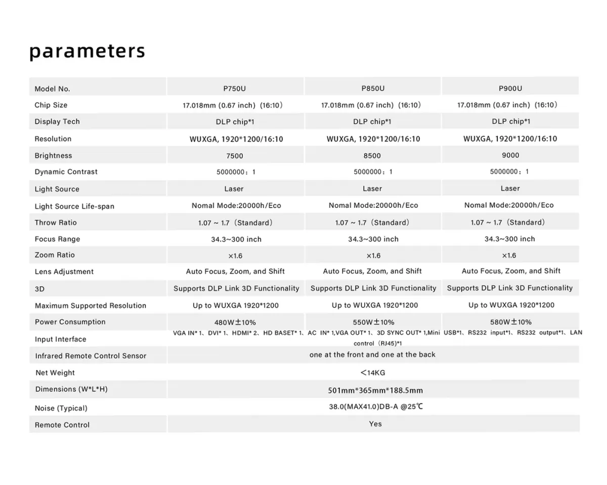 Projektor obsługuje różne protokoły sterowania, w tym TCP/IP, PJ LINK i przeglądarkę internetową, umożliwiając sterowanie sieciowe za pośrednictwem portu LAN. Jest zgodny z wieloma schematami sterowania sieciowego i innymi protokołami marki, takimi jak PJ Link (klasa 1). Ponadto sterowanie portem szeregowym RS-232 umożliwia jednoczesne sterowanie wieloma projektorami za pośrednictwem jednego komputera, z elastyczną konfiguracją długości kabla sieciowego.