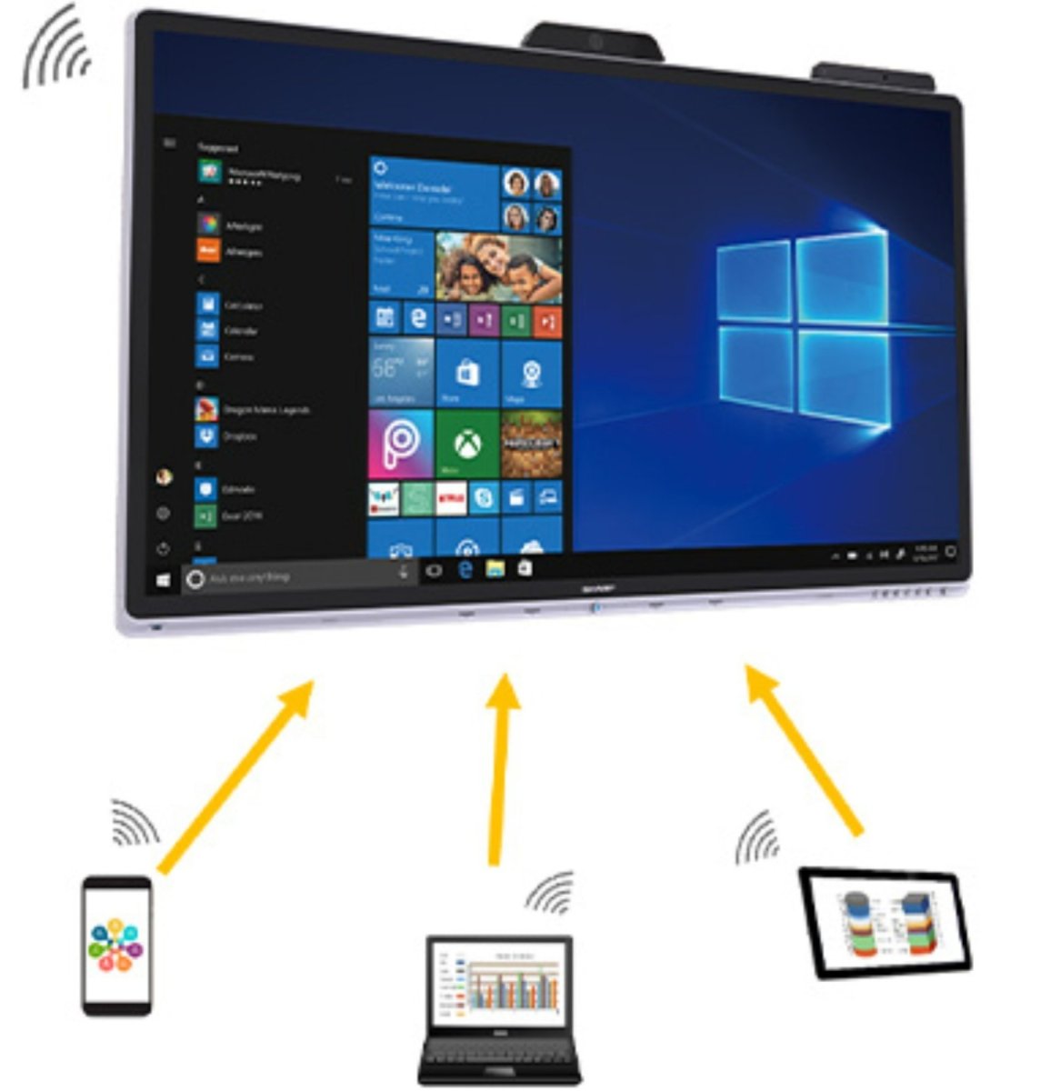Monitor firmy Sharp do pracy grupowej w systemie Windows to 70-calowy monitor interaktywny 4K nowej generacji, spełniający specyfikacje firmy Microsoft, który umożliwia lepsze wykorzystanie przestrzeni i bardziej wydajną współpracę podczas spotkań, narad, szkoleń, przeglądów technicznych i praktycznie w dowolnym miejscu.