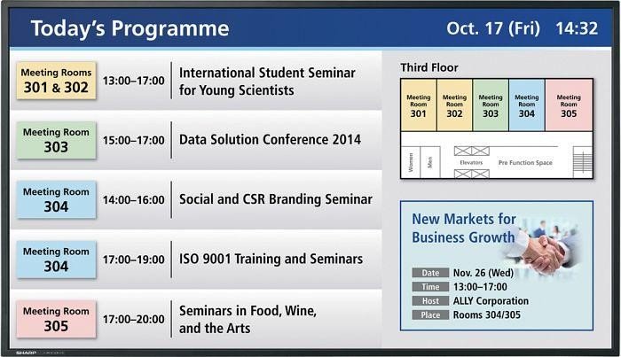 Firma Sharp stworzyła nową serię trwałych i łatwych w obsłudze profesjonalnych monitorów idealnie nadających się do szerokiej gamy zastosowań: w sklepach, miejscach relaksu, przestrzeniach recepcyjnych, poczekalniach i innych miejscach firmowych i publicznych. Całkowicie nowa seria monitorów PN-Y z ekranami o przekątnej 55" została stworzona z myślą o intensywnej pracy ciągłej i wyposażono ją w multimedialny odtwarzacz USB. Dzięki temu nie ma potrzeby instalacji dodatkowego sprzętu lub oprogramowania i wyświetlanie obrazów nigdy nie było prostsze.