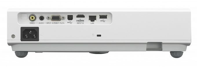 Projektor wyposażono w funkcje zabezpieczeń, w tym ochronę hasłem, blokowanie przycisków panelu, mechaniczną blokadę oraz belkę zabezpieczającą przed kradzieżą.