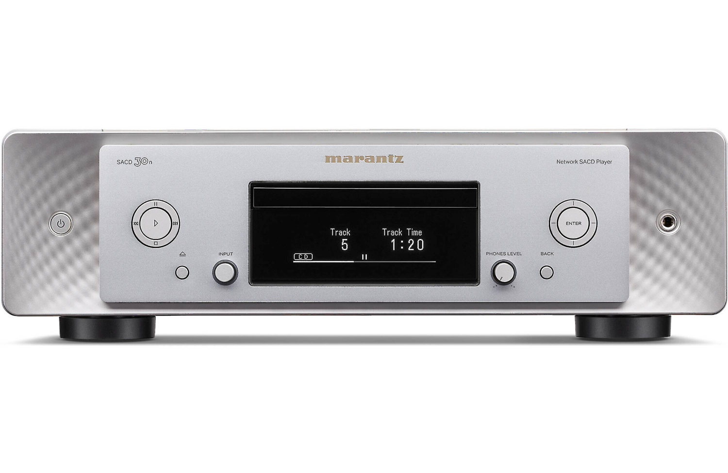 SACD 30n został stworzony, aby zaspokoić wszystkie oczekiwania współczesnego audiofila, który chce połączyć dużą kolekcję muzyki cyfrowej z wiodącymi usługami muzyki online. Marantz SACD 30n łączy w sobie klasyczny odtwarzacz SA-CD / CD klasy premium z nowoczesnym źródłem cyfrowym. Odtwarza pliki wysokiej rozdzielczości, w tym FLAC HD i DSD z domowej sieci, lokalne nośniki USB oraz źródła internetowe, takie jak usługi strumieniowe i radio internetowe. Wyposażony jest w funkcję streamingu HEOS, obsługę głosową i multiroom oraz przetwornik cyfrowo-analogowy, a także obsługę Apple AirPlay 2 i Bluetooth. SACD 30n jest nowatorskim urządzeniem, które obsługuje formaty plików aż do 11,2Mhz Quad-DSD i 384kHz/32-bit PCM za pośrednictwem USB-B/USB-DAC.