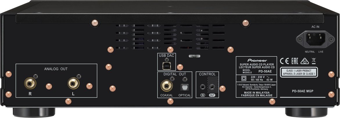 Odtwarzacz SACD PD-50AE jest kompatybilny z szeroką gamą mediów i formatów, w tym MQA . Korzystając z bogatej wiedzy Pioneera o dyskach optycznych, jest on wyposażony w oryginalne technologie sterowania przetwornikiem i cichy, antywibracyjny mechanizm napędowy . A dzięki ESS DAC i dyskretnemu zasilaczowi analogowemu/cyfrowemu , PD-50AE może zapewnić studyjną jakość reprodukcji o wysokiej wierności.