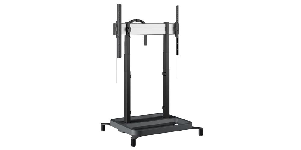 Zmotoryzowany podnośnik podłogowy RISE 5105 jest odpowiedni do wyświetlaczy o przekątnej do 98" i maksymalnej wadze 120 kg (98" tylko w poziomie z ograniczeniami regulacji wysokości). Podnośnik podnosi wyświetlacz płynnie, szybko i bezpiecznie z prędkością 50 mm/s dzięki QuickRise™. Dzięki zakresowi podnoszenia 980 mm podnośnik nadaje się zarówno do bardzo niskich, jak i wysokich pozycji.
