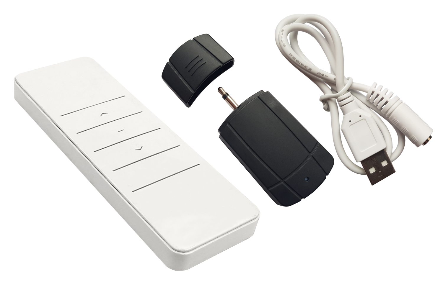 Sterowanie bezprzewodowe, uruchamiane zdalnie podczas włączania projektora, montowane w gnieździe Trigger 12V lub USB projektora