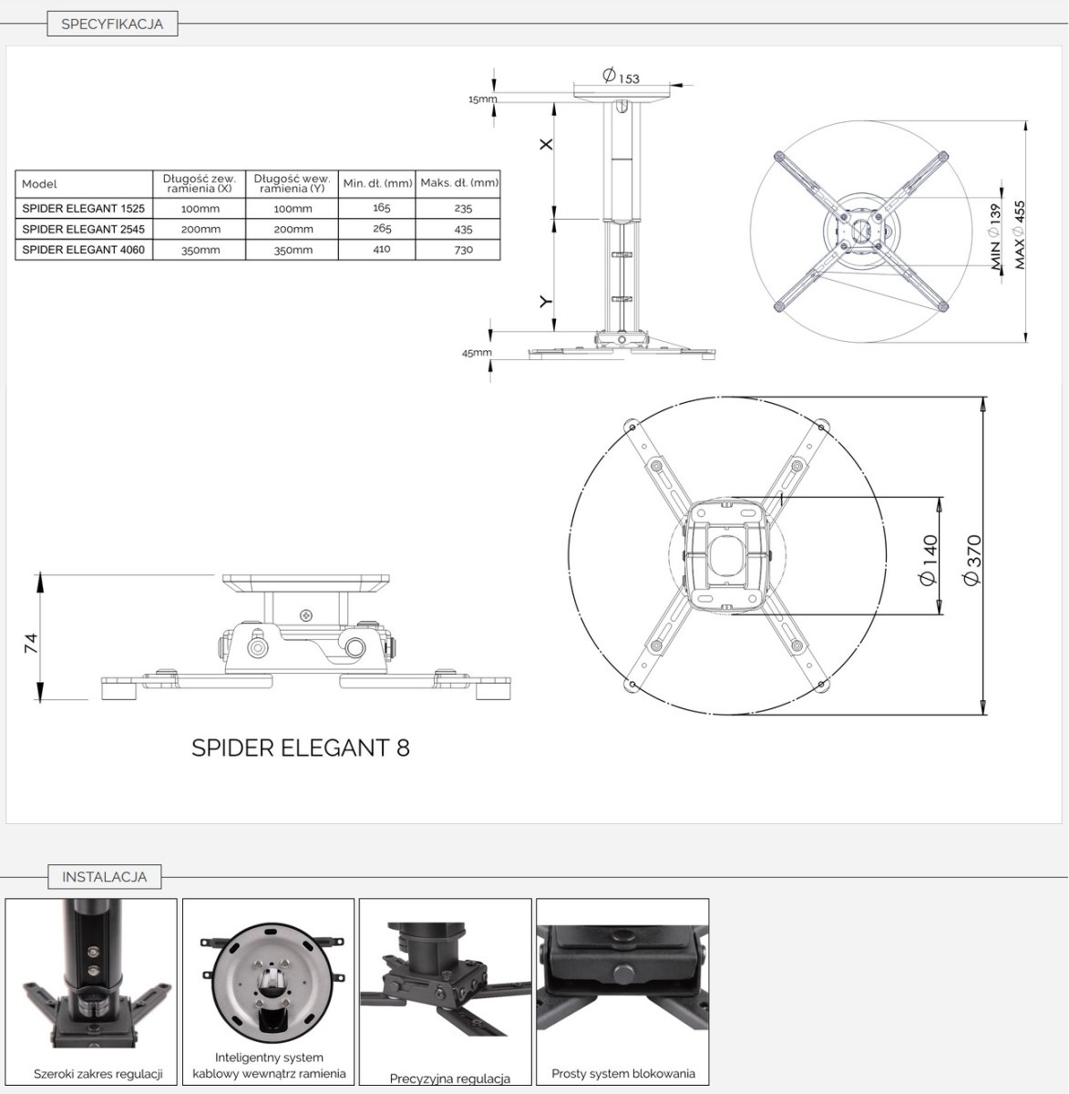 – 410-725 mm (Spider Elegant 4070)