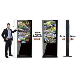 ViewSonic 55 "EP5555 zapewnia innowacyjny i przyciągający uwagę sposób, aby zwrócić uwagę na Twój biznes, sklep lub najnowszą kampanię. EPoster oferuje 55" Full HD 1920 x 1080 ekrany po obu stronach i dwa wewnętrzne głośniki 5W. Wyświetlacz wyposażony jest w 2GB pamięci Compact Flash (CF), dwa wewnętrzne odtwarzacze multimedialne i panele przednie z hartowanego szkła dla ochrony ekranów. Dzięki konstrukcji wszystko-w-jednym (all-in-one), wbudowanym gniazdom sieciowego i podstawom montażowym do dodawania własnych odtwarzaczy, EP5555 jest bardzo łatwy w obsłudze. Jest nawet zautomatyzowane Power On / Off do łatwego planowania operacji.
