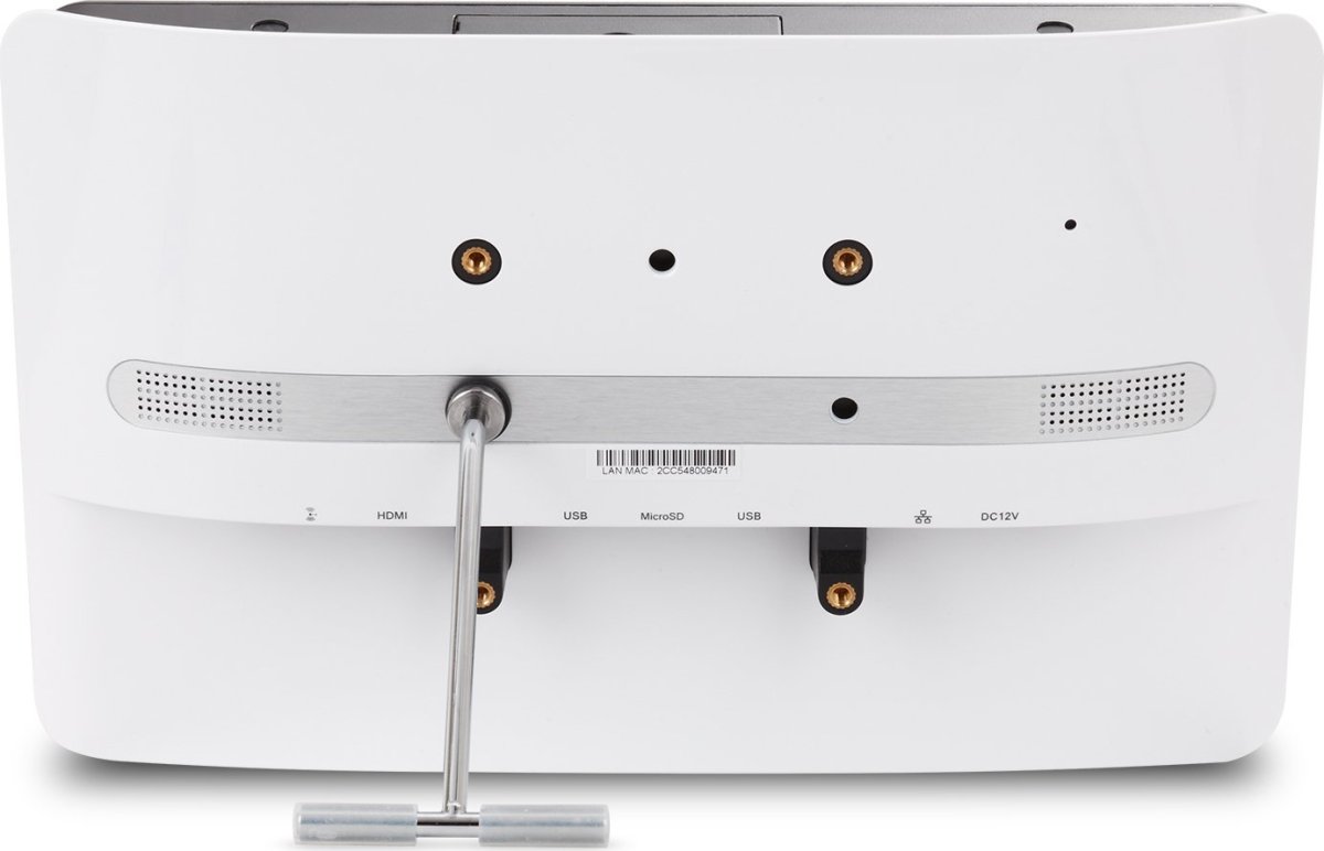 1x HDMI-Out, 1x USB (Touchfunktion), 1x Jack 3.5mm Line-In, 1x RJ-45 PoE, 1x microSD