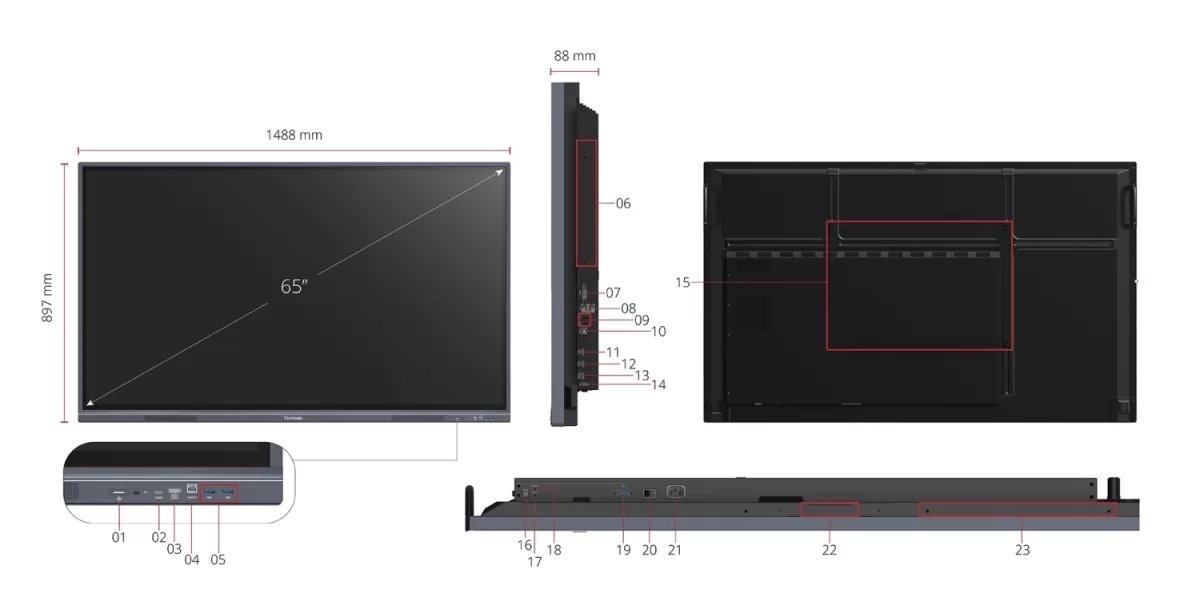 Physical (inch / mm): 1488 x 897 x 88 mm / 58.6 x 35.3 x 3.5 in