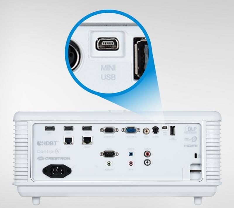 Administrator IT może zdalnie monitorować, planować i zarządzać projektorem, a także otrzymywać powiadomienia o stanie projektora dzięki zintegrowanemu systemowi Crestron® e-Control ™ i oprogramowaniu do zarządzania RoomView Express ™. Ponieważ ten projektor posiada certyfikat Crestron® i AMX®, administrator IT może kontrolować i monitorować projektor w dowolnym kampusie lub przedsiębiorstwie dowolnej wielkości.