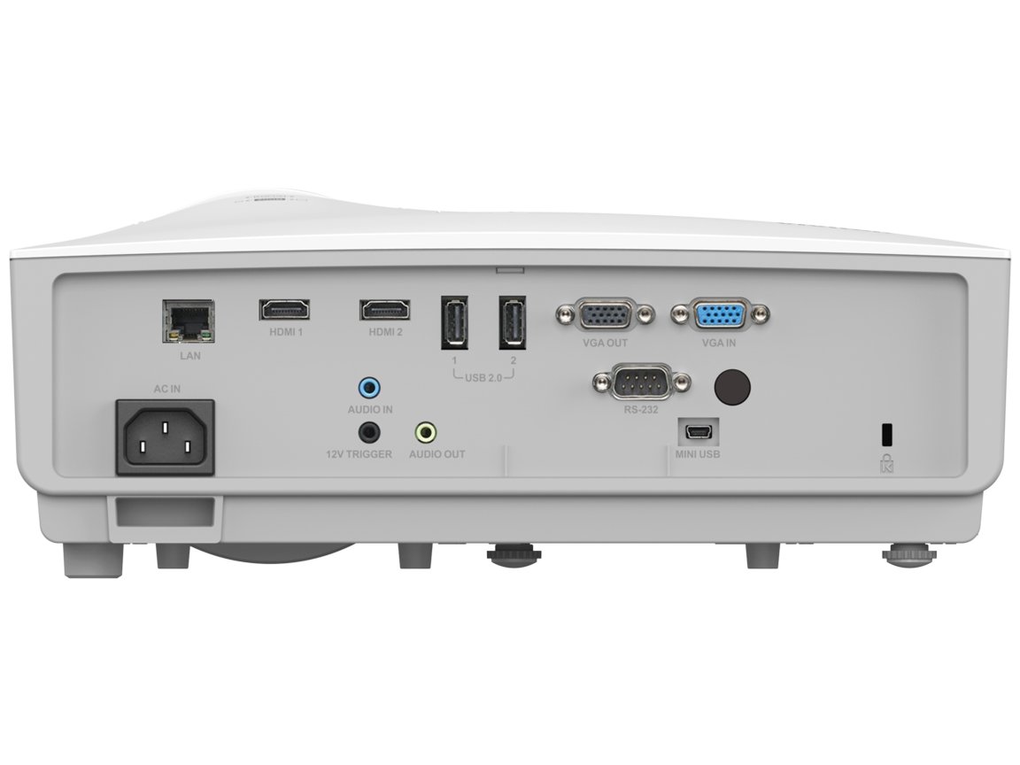 Złącza wejścia/wyjścia: Wej. VGA (D-Sub 15 styków) , Liczba gniazd HDMI (x 2), Wej. audio (Mini Jack) , Wyj. VGA (D-Sub 15 styków) , Wyj. audio (Mini Jack) , RJ45 (1x), Trigger (12V) , RS-232, USB A (×2 (5 V/1,5 A) (tylko zasilanie), USB miniB (tryb serwisowy)