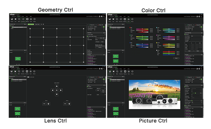 Oprogramowanie Vivitek PJ-Control umożliwia zarządzanie wieloma projektorami, kontrolę opcji wyświetlania, ustawień i harmonogramów oraz dostosowywanie funkcji wyświetlania przez sieć.