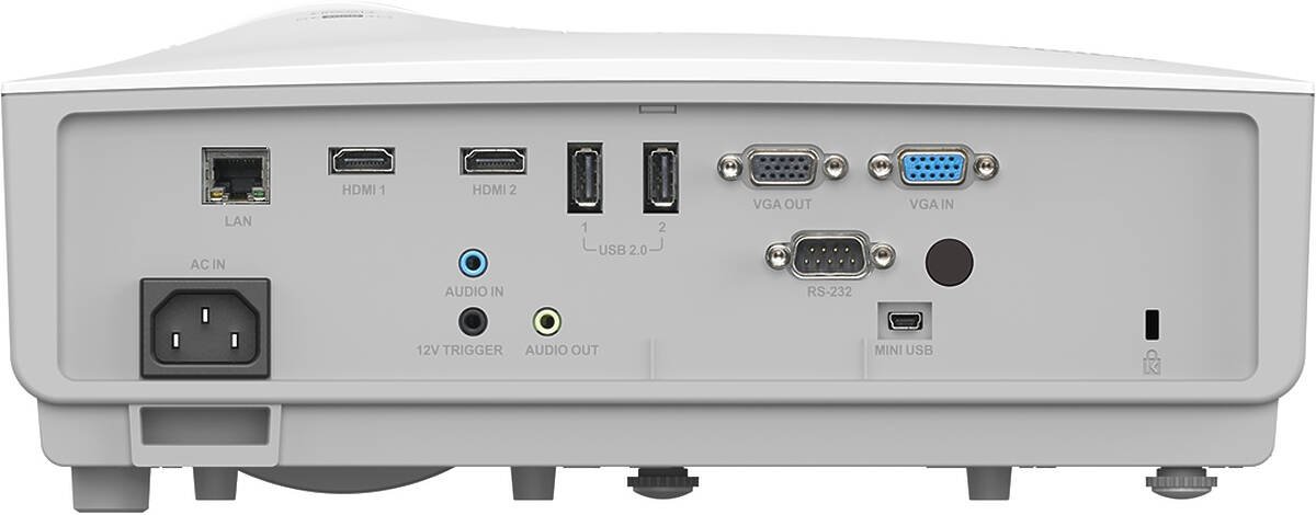 Jasność wynosząca 3800 ANSI lumenów i współczynnik kontrastu o wartości 30 000:1 gwarantujące wyraźny i jasny obraz podczas prezentacji. Projektory krótkoogniskowe pozwalają na wyświetlanie dużego obrazu z niewielkiej odległości, co jest idealne do małych pomieszczeń i eliminuje cienie rzucane przez osoby znajdujące się przed ekranem.