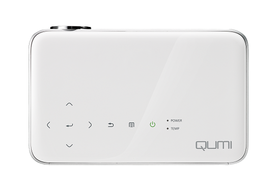 Qumi Q6 to wyposażony w bogaty zestaw funkcji kieszonkowy projektor multimedialny. Mimo zaskakująco małej wagi (475 g) i zgrabnego, płaskiego kształtu (grubość zaledwie 34 mm), wyposażony w lampę LED projektor Q6 doskonale spełnia wymagania osób, których praca wymaga częstych podróży. Przypadnie także do gustu miłośnikom domowej rozrywki multimedialnej w formacie HD, nie lubiącym rezygnować z niej także na wyjazdach. Qumi Q6 oferuje panoramiczny obraz WXGA o przekątnej 90 cali, jasności 800 ANSI lumenów i kontraście sięgającym 30 000:1. Pełen zaawansowanych funkcji multimedialnych, Q6 współpracuje z szerokim wachlarzem urządzeń, w tym z aparatami cyfrowymi, laptopami, smartfonami i tabletami; wyświetla też materiały znajdujące się na bezpośrednio podłączonym do niego nośniku USB lub zapisane w swojej przestronnej pamięci wewnętrznej (użytkownik znajdzie w niej aż 2,5 GB miejsca na swoje pliki) . Projektor jest zgodny ze specyfikacją MHL, łączy się z sieciami Wi-Fi i posiada oprogramowanie wewnętrzne, obejmujące aplikację do przeglądania i projekcji dokumentów, zdjęć, filmów i plików audio bez konieczności podłączania go do komputera. Łączność Wi-Fi daje mu także dostęp do materiałów cyfrowych znajdujących się na urządzeniach iOS i Android.