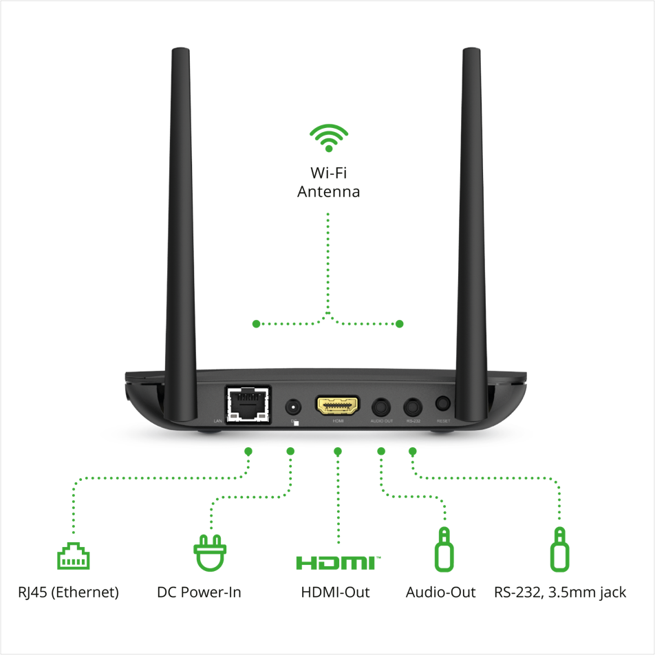Urządzenie umożliwia płynne przełączanie pomiędzy funkcjami współpracy bezprzewodowej i cyfrowej dystrybucji treści w przypadku każdego rodzaju komunikacji wizualnej, np. spotkań, cyfrowej dystrybucji treści czy obu jednocześnie. Komfort i łatwość obsługi zaskoczą niejednego użytkownika!
