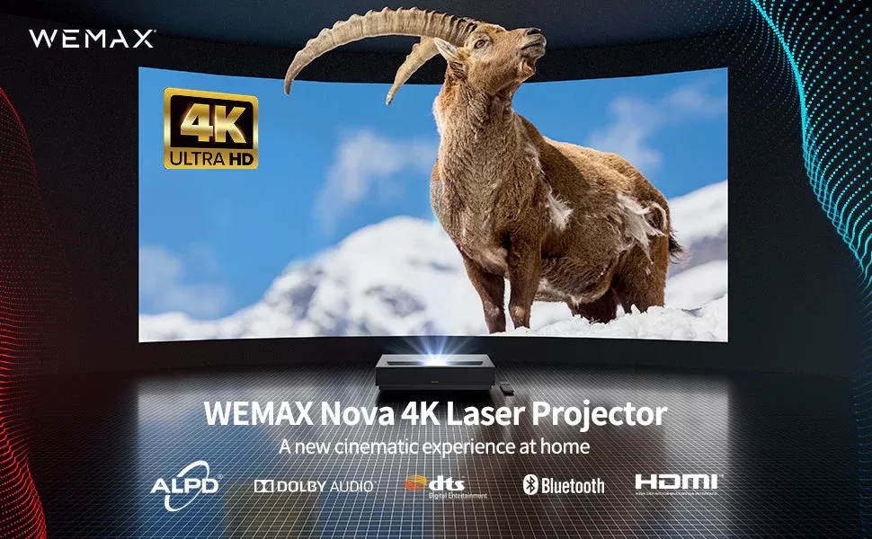 WEMAX Nova 4K UHD Projektor do bardzo krótkiego rzutu, Android TV Telewizor laserowy ALPD, 80"-150" HDR10, Dolby Audio DTS-HD, WiFi Bluetooth, do gier wideo