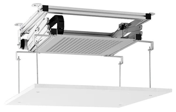 Winda sufitowa PL1000 firmy celexon jest idealnym rozwiązaniem montażu projektora w sufitach podwieszanych. Wygląd sali konferencyjnej lub salonu pozostaje niezakłócony a nowoczesny wygląd projektora widoczny jest wtedy kiedy chcemy. W połączeniu z wbudowanym ekranem firmy celexon mają Państwo kompletne multimedialne wyposażenie i to prawie niewidoczne w Państwa salonie, sali konferencyjnej czy wykładowej.