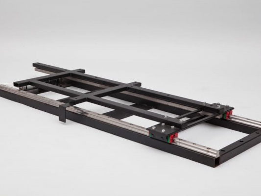 - konstrukcja windy oparta na systemie ramy poziomej prowadzonej przez precyzyjny mechanizm.